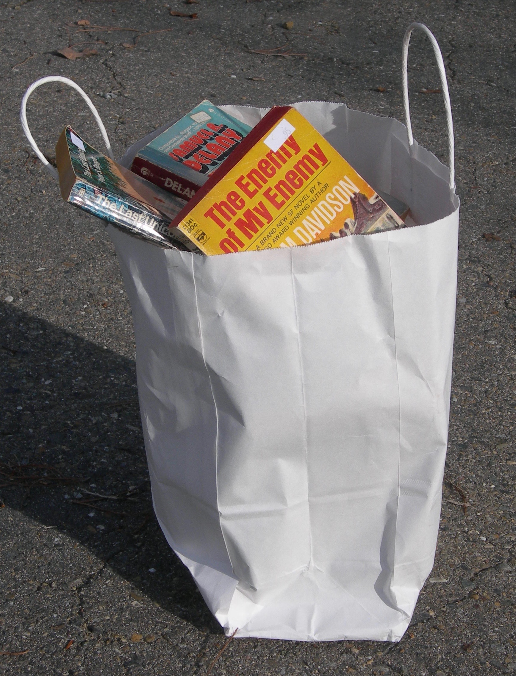 I walked into the bookstore. The proprietor said, “How are you?” and I replied, “Sad. You’re closing.” And she was. About a third of the shelves were empty and she was selling books by the bag, one to ten dollars, depending on the size of the bag.